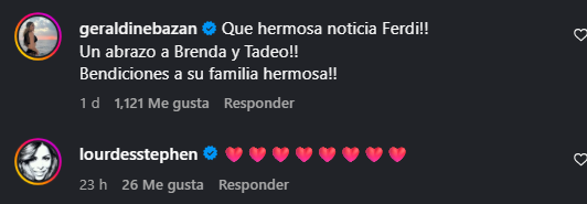 Famosas como Geraldine Bazán y Lourdes Stephen, además de fans, celebraron en redes sociales esta maravillosa bendición para la parejita, que pronto tendrá al nuevo bebé en su hogar. ¡Mil enhorabuenas!