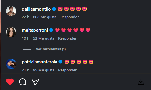 "¡Qué belleza y qué valiente mamá! Felicidades tocaya!", expresó Michelle Galván. Julián Gil, Galilea Montijo, Patricia Manterola y otras celebridades emplearon emojis de corazones, entre otros, para enviar los mejores deseos a Michelle, Matías y Milán. Los internautas también se pronunciaron encantados de ver cómo su descendencia crece: "Hasta aquí llegó la fuerza más poderosa que existe el AMOR. Bienvenido Milán", "Qué momento tan maravilloso. Gracias por compartirlo con todos nosotros", comentaron.